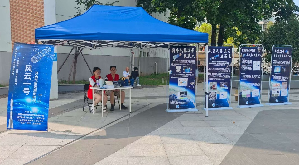 为纪念我国自行研制和发射的第一颗极地轨道气象卫星——风云一号成功发射37周年,2025年9月7日13:30-18:00,南京信息工程大学在东苑食堂前的场地举办了一场别开生面的气象卫星知识科普活动。